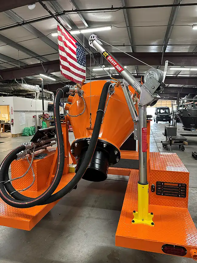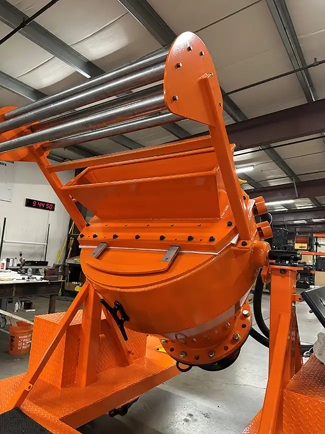 Have you seen our latest The Shooter® 24? We made a few improvements over the original trailer, now with a much simpler and better torsion stub-axle suspension system with brakes, front rollers for assisting liner coming off the reefer truck, a davit crane for assisting heavy bottom flange changes and various drum angles, a new design top roller and knife gate for after the liner tail passes, a remote operation station mounted on the fender, and a storage box for extra tools and paperwork. It also sports mag wheels and a mounted spare! The Shooter® 24 Pro efficiently inverts liner in sizes 15"-24" and with the optional conversion kit can increase that range from 6"-24".